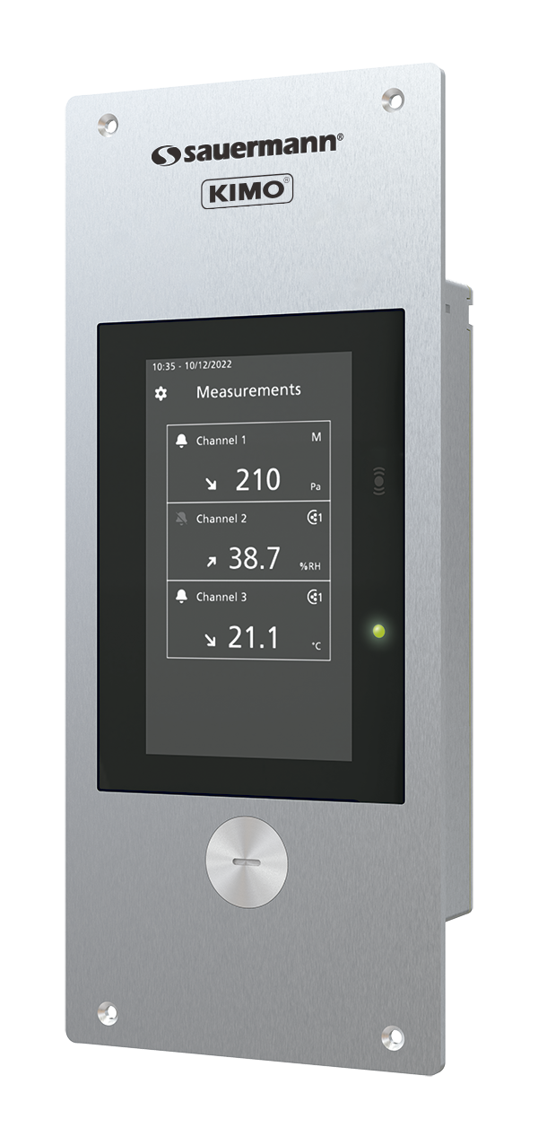 Kimo Si-ATE320 incorpora una pantalla táctil en color en su panel frontal de acero inoxidable 316L cepillado. Su estanqueidad es mejorada (IP66) y sus materiales son resistentes a los procesos de esterilización mediante peróxido de hidrógeno vaporizado (H2O2).