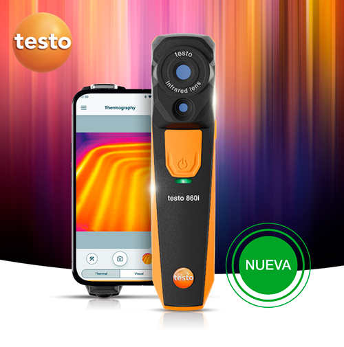 La nueva cámara termográfica testo 860i es una herramienta compacta y fácil de usar, diseñada para inspecciones rápidas en el mantenimiento HVACR, mecánico, eléctrico, detección de fugas, inspecciones puntuales en edificación y otras muchas aplicaciones. Su control a través de la App testo Smart, permite visualizar imágenes térmicas y documentar mediciones de forma sencilla.