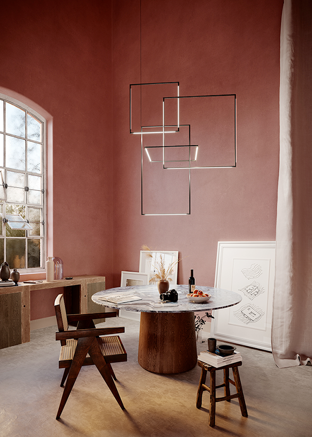 Un juego de líneas geométricas que atrapan la luz en su interior marcando y ordenando con delicadeza los espacios donde se instala. Disponible en diferentes medidas y tipologías -de sobremesa, pie, pared o suspensión-. Su tenue pero potente luz la convierte en un diseño versátil ideal para todo tipo de espacios, con una posibilidad de trazados y geometrías imposibles muy amplia. El equilibrio entre la originalidad y la sutileza de sus formas hará que pase desapercibida en la estancia o que, en otras ocasiones, sea un foco de atención y de identidad del espacio. Es posible, además, dirigir y controlar su luz: cada cliente puede personalizar su entorno. En sus versiones de sobremesa y aplique, se incorpora una base de mármol: un material noble que añade un punto cualitativo y de valor ante el consumidor final.