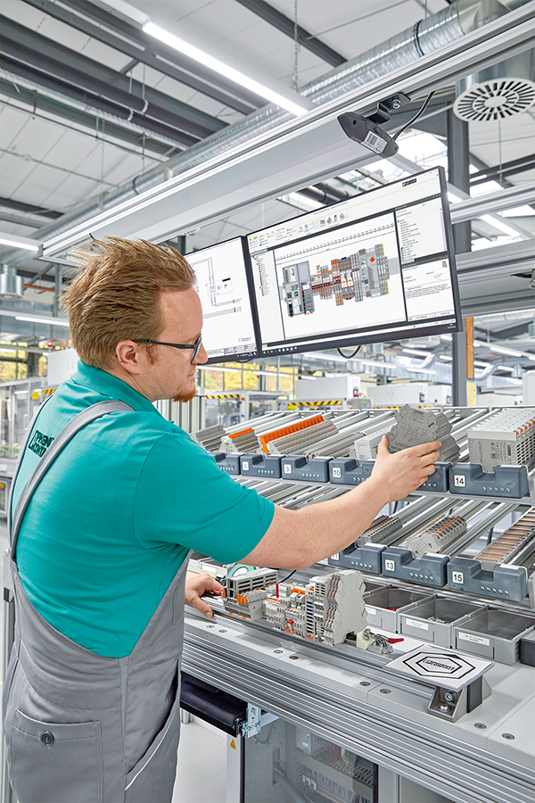El sistema de asistencia Mount Assist de la familia de productos ClipX de PHOENIX CONTACT utiliza la tecnología pick by light y permite concentrarse en actividades que aportan valor