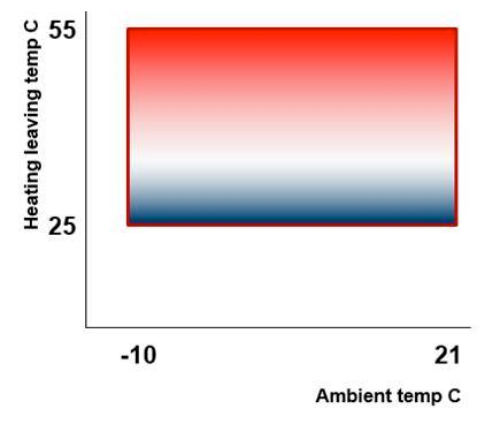 • Un amplio mapa de funcionamiento. Capaz de dar agua a 55ºC a -10ºC