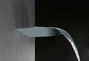 Rociador Extraplano.- Con un espesor de apenas 2mm convierte la pieza en un diseño espectacular a la par que fino y elegante. El rociador, empotrado a la pared, presenta la forma de una fina hoja que encaja perfectamente con un diseño minimalista.