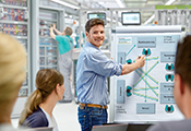 El asesoramiento se basa en años de experiencia e incluye una amplia gama de actividades de asesoría y formación. Phoenix Contact lleva esto a cabo junto al usuario para combinar la experiencia metodológica con los conocimientos técnicos de los procesos in situ. Con el fin de elaborar un concepto adecuado, Phoenix Contact ofrece al cliente una primera visita que incluye un examen rápido de sus instalaciones de producción.