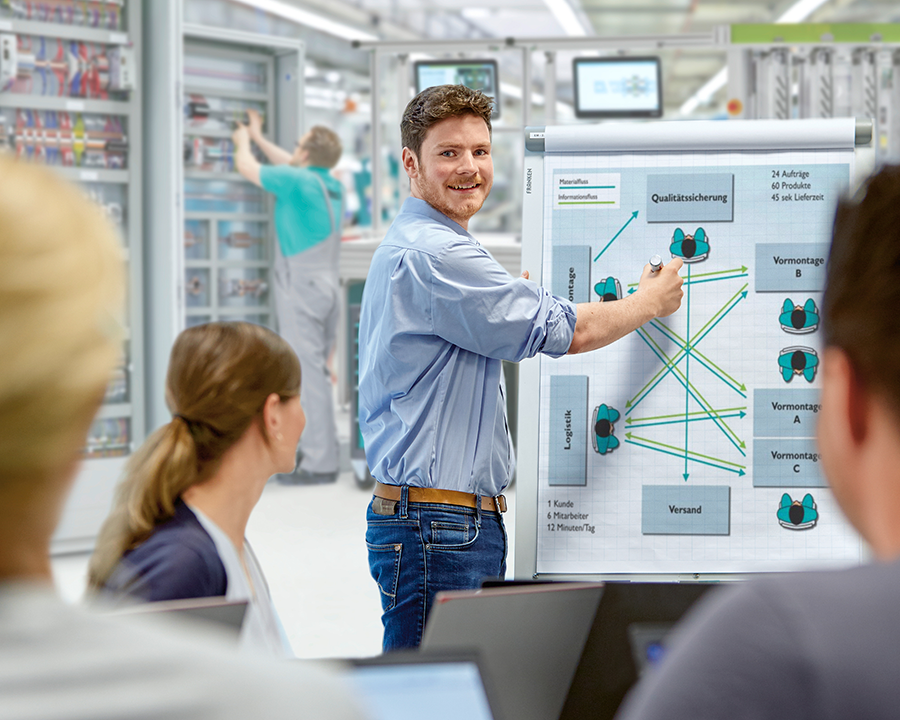 Teniendo en cuenta el concepto de Lean Production, Phoenix Contact ofrece un asesoramiento personalizado para la optimización de la cadena de procesos en la fabricación de armarios de control. Esto permite lograr un ahorro significativo mediante cambios rápidos en los procesos combinados con un bajo coste financiero.