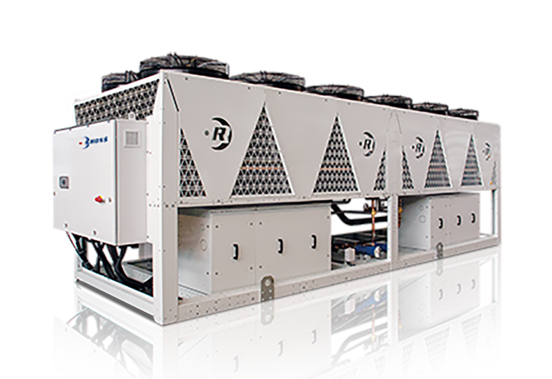 Enfriadores de agua refrigerados por aire, bombas de calor y unidades multiuso EXP de 360 a 650 kW con compresores scroll herméticos de última generación optimizados para refrigerante R454B.