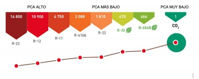 Comparación de cifras de GWP para los refrigerantes más importantes.