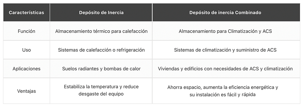 ¿En qué se diferencia un depósito de inercia y un depósito de inercia combinado?