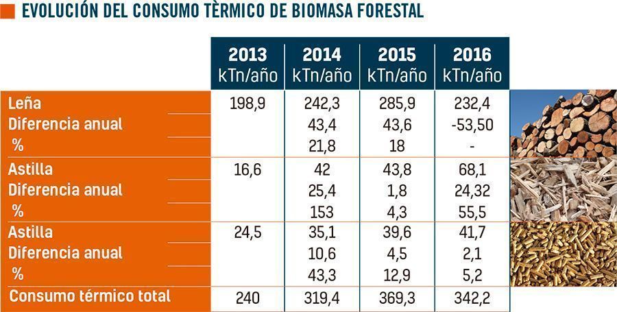 Aumenta el consumo de astilla y del pellet, y disminuye el de leña.