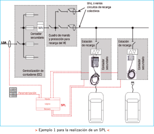 La ITC-BT 52 denomina a este tipo de solución SPL (Sistema de Protección de Línea General de Alimentación). Se concibe como un sistema que, mediante bus cableado o mediante bus inalámbrico, permite realizar una gestión dinámica de potencia de un conjunto de infraestructuras de recarga en función de la potencia contratada disponible en el circuito de recarga de V.E.