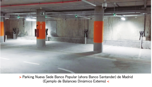 Incorporamos este ejemplo del parking de la nueva sede del Banco Popular (actualmente Banco Santander) en Madrid donde se han incorporado 40 puntos de recarga comunicados mediante cable Ethernet con una electrónica de control externa y un aplicativo de configuración Web-Browser por parte del personal de mantenimiento.