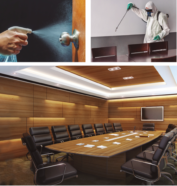 Antes de la entrada de usuarios, será necesaria una desinfección a fondo de las oficinas, mediante los sistemas habituales, y la re-activación de todos los protocolos de mantenimiento que pudieran estar suspendidos por la crisis, especialmente los que afectan a la seguridad de las personas: protección contra incendios, aparatos elevadores, legionella, etc.
