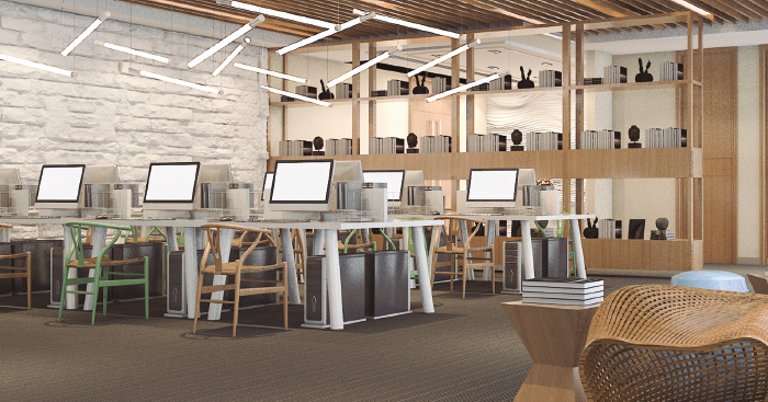 • Señalización y comunicación digital: Pantallas de contenido actualizables y dinámicas que permiten la interacción digital con el usuario del edificio para facilitar información sobre ocupación de salas, localización de departamentos, puestos de trabajo, recorridos de evacuación, políticas de educación sostenible y promoción de la salud (recordatorio higiene manos, uso mascarillas); así como también información personalizada para el usuario.