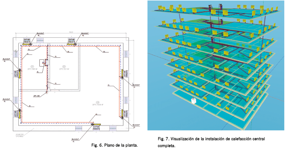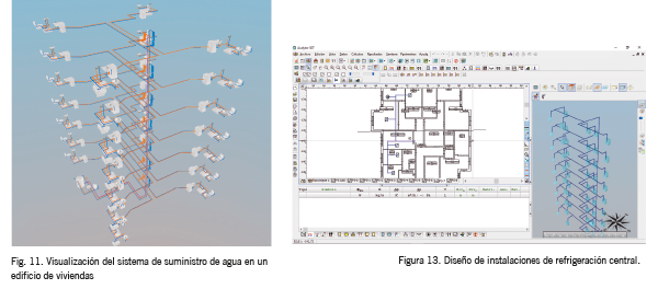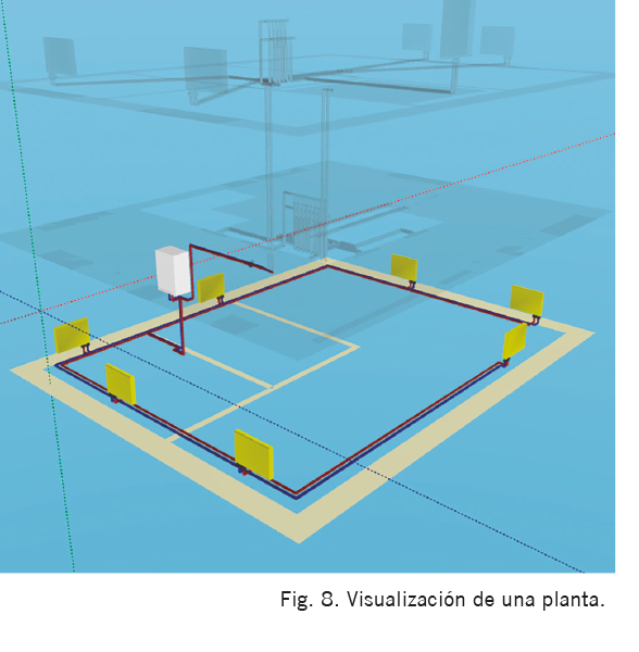 En este último caso, el diseñador dibuja la instalación en los planos de planta y el programa genera automáticamente la tercera dimensión (Fig. 6) [3]. Gracias a esto, se crea un modelo tridimensional completo de la instalación de manera muy rápida y versátil.