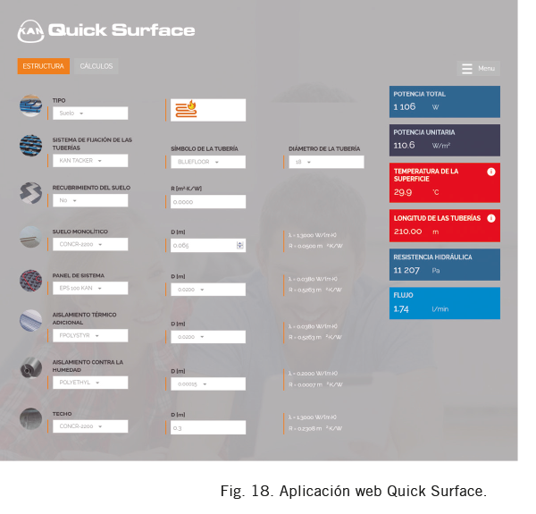 Las aplicaciones de Internet, fáciles de usar están diseñadas para seleccionar rápidamente los radiadores y calcular la demanda de energía de calefacción de las habitaciones y de todo el edificio. Como resultado del cálculo de la selección del radiador, la aplicación muestra un informe que contiene los tipos y tamaños de radiadores que cumplen con los datos de salida (Fig. 18).