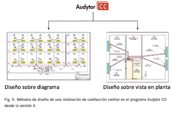 El módulo Audytor EC [6] permite el diseño gráfico de nuevas instalaciones de calefacción central, así como el ajuste de instalaciones existentes, por ejemplo, en edificios aislados.