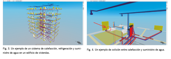 Gracias a la integración de tres módulos, se ha hecho más fácil detectar colisiones entre instalaciones (Fig. 4). Además, junto con el desarrollo del software, al mismo tiempo, los diseñadores de los tres sistemas tienen la oportunidad de utilizar las últimas funciones del programa que facilitan el diseño.