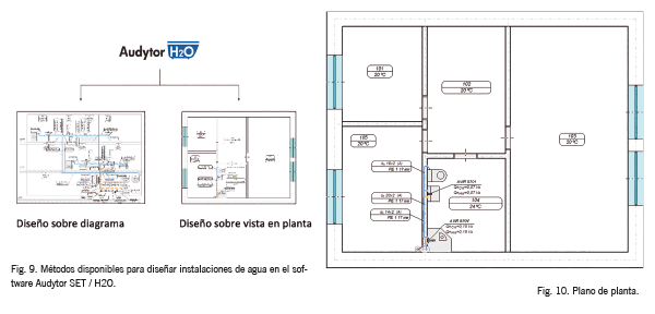 A partir de la versión 4.0, el programa ofrece dos métodos para diseñar una instalación: diseñar con el uso de diagramas y diseñar en proyecciones en planta (Fig. 5) [1, 2].