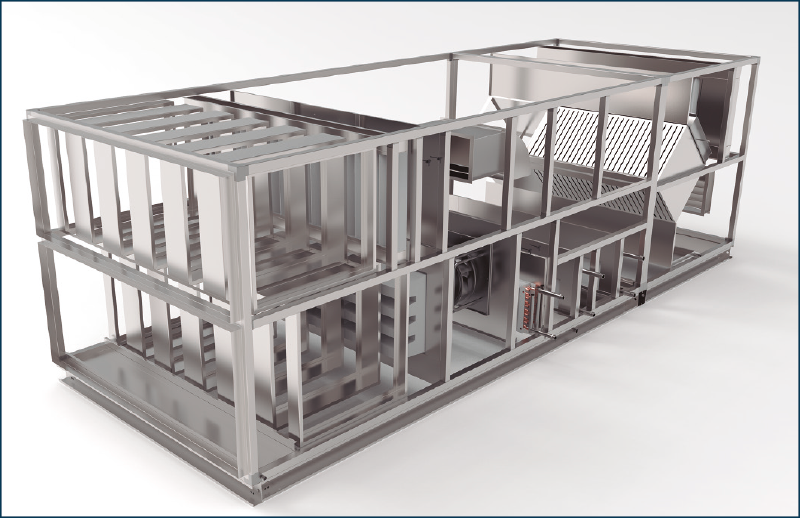 Para el Tratamiento del Aire en las Salas Limpias se utilizan las UTAs clasificadas como Higiénicas. A diferencia de un Climatizador estándar esta categoría de calidad superior presenta una solución desarrollada específicamente para satisfacer los requerimientos de las Salas Blancas. Entre sus características se esmera especial atención en: