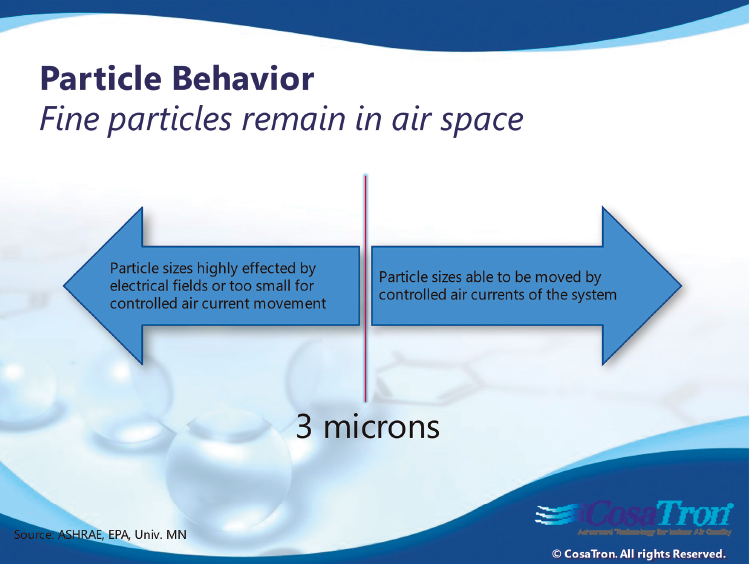 Para entender el problema es necesario conocer cómo se comportan las partículas en el aire. El 99% de partículas tienen un tamaño inferior a 3 micras y éstas no están influenciadas por la corriente de aire.