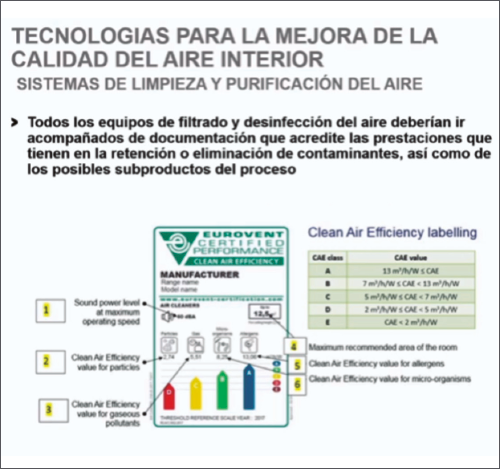 El pánico se apoderó de todos nosotros hasta el extremo de perder el sentido común y es en el momento de pánico y de incertidumbre cuando aparecen cientos de soluciones mágicas. Yo mismo me interesé por algunas de estas tecnologías basadas en la Ionización con diferentes nombres, Polarización activa, Photocatálisis, Plasma Frío, etc… hasta que me puse a estudiar cómo funcionaban y rápidamente me aparecieron dudas sobre su efectividad pero sobre todo sobre los efectos secundarios que podían producir. Fue entonces cuando me puse a investigar sobre la regulación y normativa que regían las certificaciones de los llamados Purificadores de Aire y mi sorpresa fue que no hay normativa alguna que regulen estos productos en Europa. Contacté con Eurovent y me dijeron que tenían un programa de certificación que estaban desarrollando desde el 2016 partiendo de la norma francesa NF NF-B44-200:2016 que pretendía analizar 11 contaminantes de aire interior clasificados en 4 categorías (Particulate Matters, Volatile Organic Compounds, Micro-organisms and Allergens) y los Sub-productos generados como son (ozone, carbon monoxide, nitrogen monoxide, nitrogen dioxide) para verificar que estos productos no emiten sustancias peligrosas.