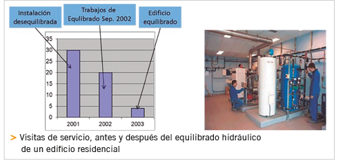 Debido al impacto que el consumo de bombeo tiene en el consumo anual (en refrigeración, desde 7-17%, o en calefacción, entre 0.5-1.5%), equilibrar la instalación reduce la factura de consumo y de servicio anuales5.