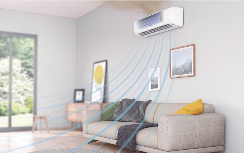 Los aires acondicionados usan ventiladores para devolver el aire a la habitación y asegurar que circule eficientemente.