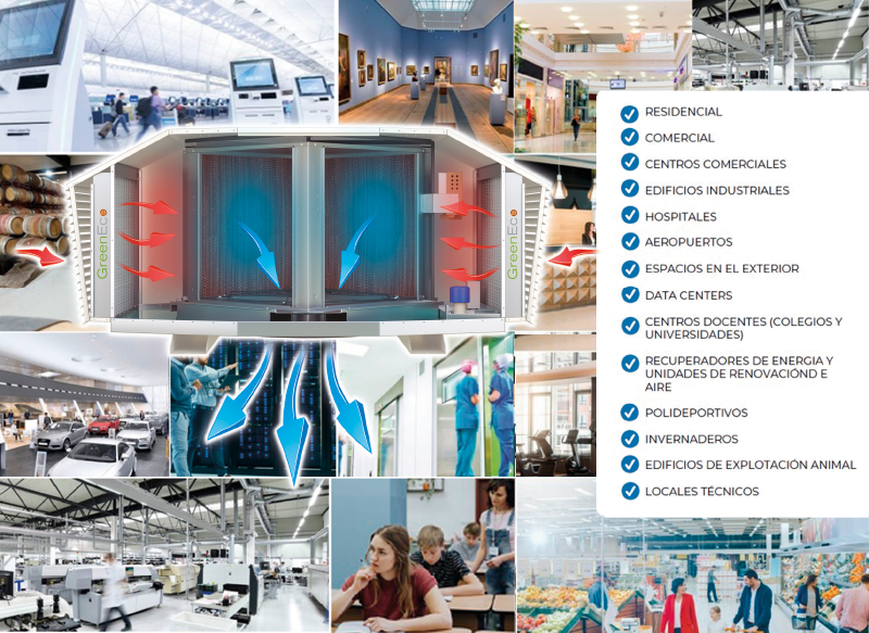 • Climatización de cuartos técnicos, tales como cuartos de generadores, eléctricos, compresores, etc.