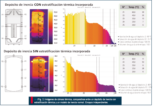 Nuevos conceptos en el diseño, ya presentes en el mercado, como depósitos acumuladores de inercia que incorporan sistemas para la estratificación térmica, son soluciones que contribuyen definitivamente a la gestión de la energía en estado primario proveniente de cualquier fuente energética.