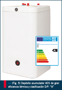 Además de conseguir minimizar las pérdidas caloríficas del conjunto, deberán cumplir como mínimo con todas las exigencias normativas vigentes en cuanto a su clasificación energética (clasificación ErP), cobrando especial importancia en este ámbito, los depósitos de grandes capacidades por encima de los 1000 litros, destinados a instalaciones de gran consumo o centralizadas en su contribución a la eficiencia térmica en el conjunto de la instalación.