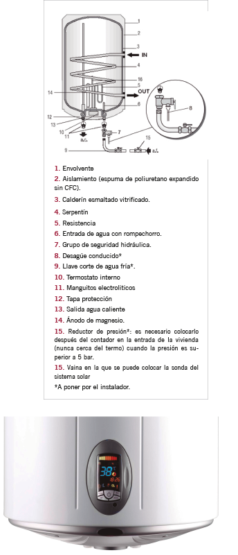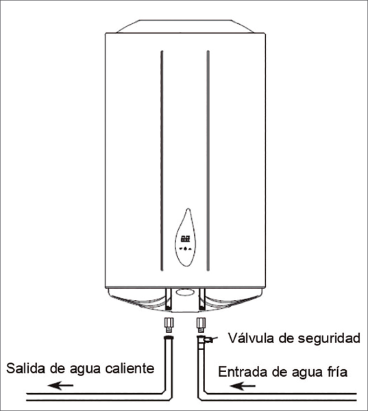 y La válvula de seguridad, ya que al tener agua acumulada que aumenta su volumen por efecto del calentamiento, se necesita instalar este elemento de seguridad que en ocasiones puede tener que abrir para disipar la presión. Necesario conducirla a un desagüe.