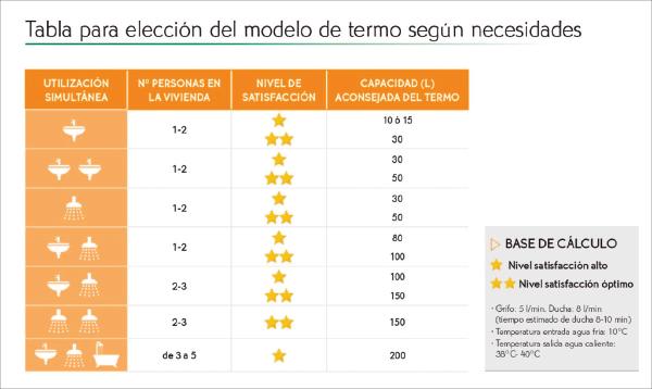 Como ya decíamos, algo vital a la hora de disfrutar de las ventajas de los termos eléctricos, es seleccionar de forma adecuada la capacidad de este en función de las necesidades de los usuarios.