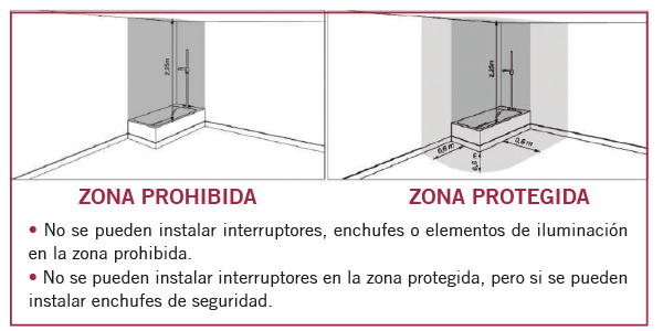 Además, debemos tener presente que existen los denominados volúmenes de seguridad, relacionados con donde no es posible colgar el termo al ser un producto eléctrico: