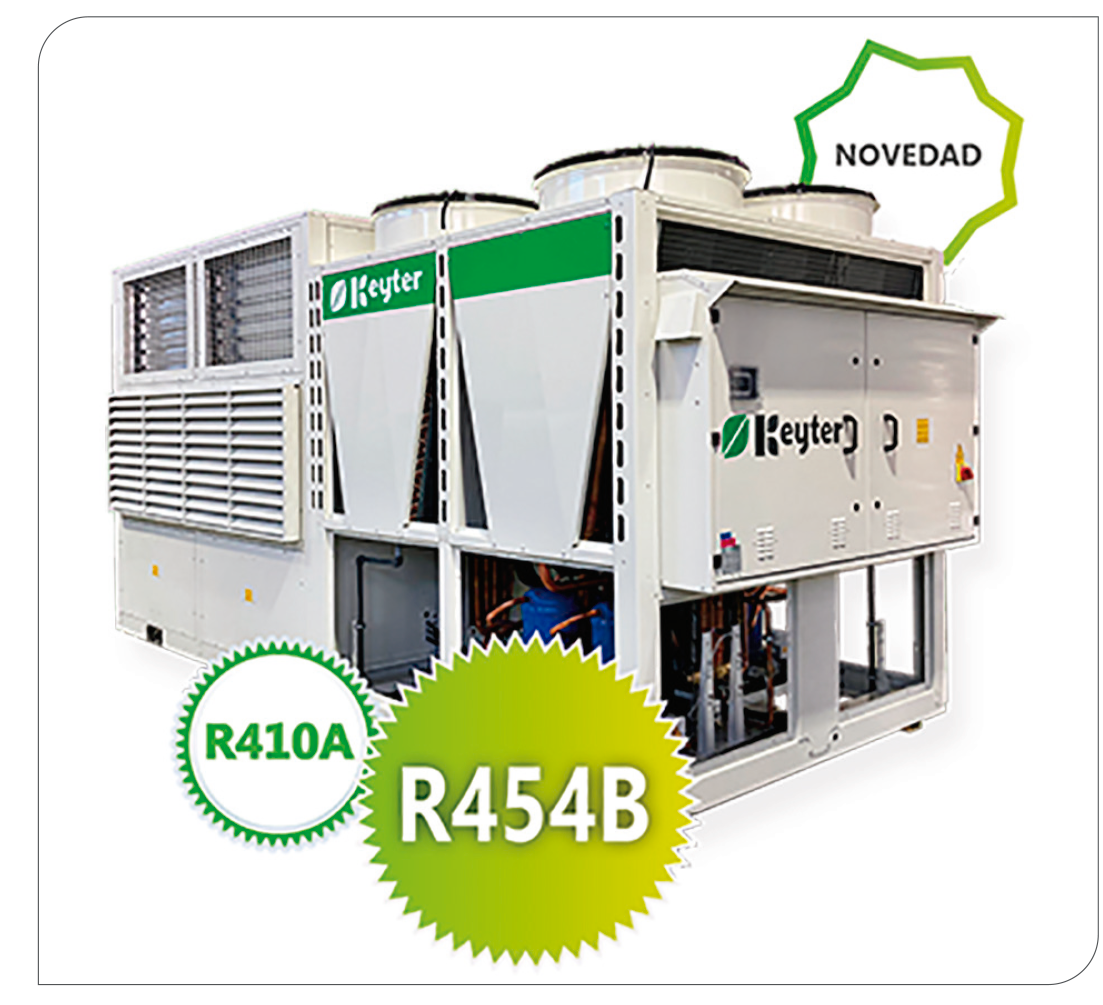 El uso de refrigerantes tipo A2L, en el caso de KEYTER el R454B, no es una lacra como en sistemas Tipo 2 invasivos, donde las tuberías de refrigerante recorren el interior del edificio aumentando los posibles puntos de fuga de forma exponencial, limitando la carga de refrigerante por circuito.