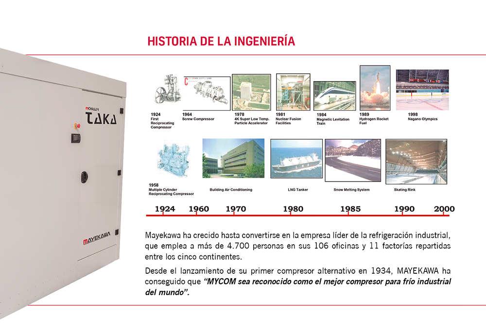 Mayekawa dispone de la experiencia necesaria para aportar soluciones adecuadas a las exigencias de las instalaciones modernas de climatización y refrigeración.