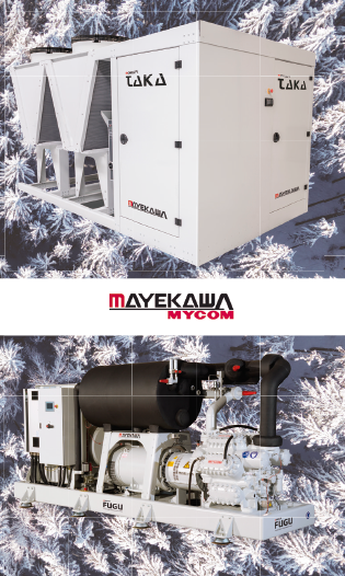 La prioridad de MAYEKAWA es continuar ofreciendo al mercado soluciones respetuosas con el medioambiente; y en esta línea, Mayekawa presenta la nueva serie de enfriadoras mCHILLER, una gama de enfriadoras de agua o glicol de baja carga de amoníaco condensadas por aire (TAKA) o por agua (FUGU), para enfriamiento de procesos, climatización, HVAC y refrigeración.