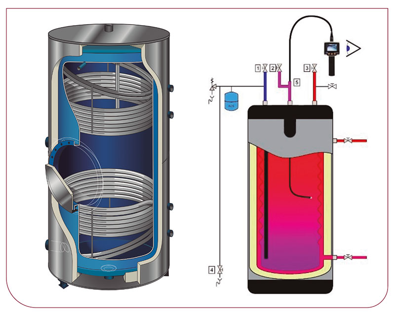 Finalmente, la instalación de generación permitirá que el agua alcance una temperatura de 70ºC en caso de que se necesite realizar un tratamiento térmico de desinfección, con lo que los depósitos utilizados deberán ser adecuados en materiales para soportar estos choques térmicos. Las tecnologías actuales en acero inoxidable y tanques de acero con recubrimiento vitrificado están totalmente adaptadas a estas condiciones de trabajo.