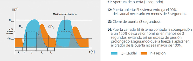 b) El sistema es capaz de reducir el nivel de sobrepresión al 120% del valor de diseño en menos de 3 segundos tras el inicio del cierre de la puerta.