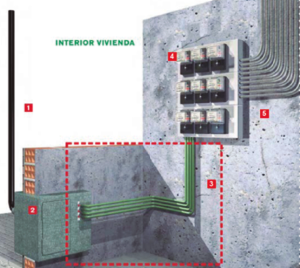 En lo que puede afectar directamente a los cables se puede leer en este punto que se habla de cables de fase y de neutro sin especificar que sean 3 de fase como en la versión anterior y muy acertadamente se especifica la obligatoriedad de incluir en la canalización de la LGA el conductor de protección cuando hay cuartos o armarios de contadores en distintas ubicaciones (desde el cuarto o armario de contadores donde se ubica el borne principal de tierra).