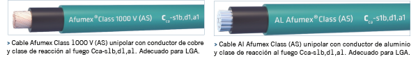 Los cables serán de la clase de reacción al fuego mínima Cca-s1b,d1,a1. Con ello se actualiza el texto del REBT al cumplimiento del Reglamento de Productos de Construcción (CPR) con la ventaja añadida de dejar claro la exigencia mínima de reacción al fuego de los cables. Anteriormente el texto era más difuso, aunque también se ejemplificaba con alguna norma de diseño de cable para orientar en la solución. En este caso la referencia única es UNE 21123-4, que es la norma de diseño del cable Afumex Class 1000 (AS) y del Al Afumex Class (AS).