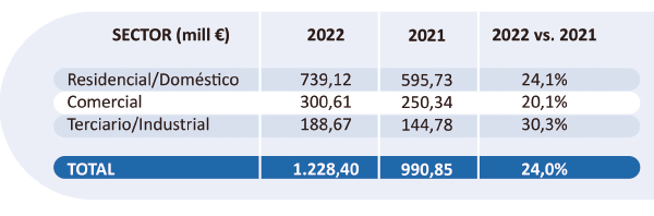 El mercado correspondiente a este sector experimenta un incremento en volumen de negocio del 24,0 %, respecto del ejercicio 2021.