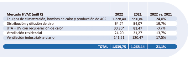 El informe elaborado por AFEC, Asociación de Fabricantes de Equipos de Climatización, repasa los principales datos del mercado HVAC de 2022, las tendencias y retos para el sector en 2023 y destaca un crecimiento del mercado total del 21%