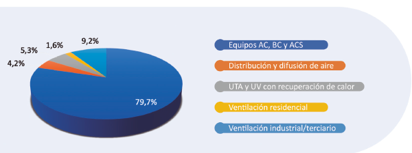 En el sector residencial/doméstico, las cifras correspondientes a 2022 son: 978.958 unidades y 739,12 millones de euros. En el caso de equipos partidos, el número de unidades se corresponde con el de las exteriores.