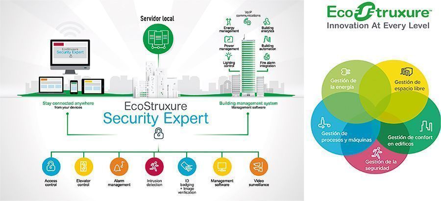 EcoStruxure es la nueva generación de arquitectura y plataforma de Schneider Electric que ofrece soluciones compatibles con IoT. El nuevo EcoStruxure es abierto, escalable e interoperable, conectando las tres capas principales de las tecnologías de Schneider Electric, desde productos conectados, hasta Edge Control, aplicaciones, analíticas y servicios.