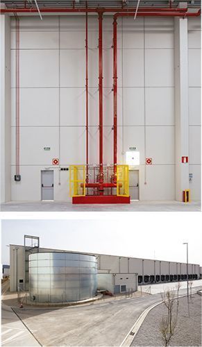 > Red de rociadores conforme a NFPA13 y FM Global (Factory Mutual Insurance), y específicos para cámara frigoríficas de frio positivo y negativo.