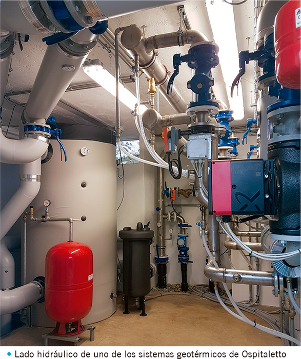 En una zona cercana, sin embargo, se puede acceder a un parque público. El único indicio de la presencia de una planta de calefacción de zona de 2.5MW compuesta de dos pozos de muestreo, dos de retorno de agua subterránea a través de redes separadas y la energía producida por las aguas residuales a lo largo del camino. Las plantas de energía geotérmica son de dimensiones reducidas. Por ejemplo, en el caso de los paisajes protegidos:
