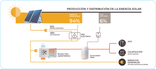 A lo largo de este primer invierno, la monitorización permitirá medir la eficiencia de la instalación con datos reales, así como acoplar las curvas de demanda con las curvas de producción de energía fotovoltaica para reducir la demanda de energía no renovable al máximo posible, y conseguir un importante ahorro energético.
