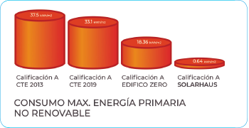 Gracias al estricto seguimiento en el proyecto de estas tres premisas, no sólo se cumplen los objetivos fijados, sino que además se cumplen sobradamente los requisitos del CTE 2019 para conseguir una Calificación Energética A, al contar con un consumo máximo de energía primaria no renovable de tan sólo 0,64 kWh/m2.