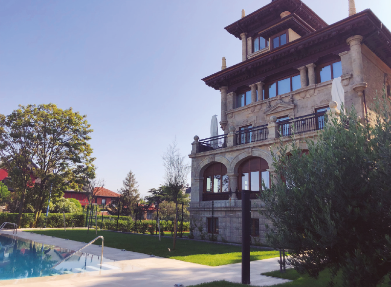 Este edificio construido en 1918 por el arquitecto Leonardo Rucabado, alberga ahora 4 viviendas de lujo de unos 250 m2 con piscina comunitaria, jardín privado, garaje y trastero. La empresa CJM Obras y Gestión Sostenible ha sido la encargada de la reforma y transformación del edificio en viviendas. La planta baja y primera planta acogen dos pisos dúplex, uno de ellos con vistas al mar, y ambos con jardín privado. La segunda planta acoge una única vivienda y las tercera y cuarta plantas han sido configuradas como un solo piso dúplex, con posibilidad, en el futuro, de construir dos pisos independientes. El dúplex superior tiene acceso al torreón Eguzkialde, característico de este edificio.