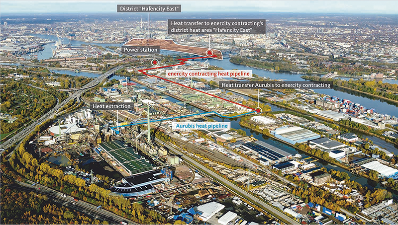 El Grupo Aurubis ha adoptado este mismo enfoque para mejorar la sostenibilidad en una de sus fundiciones. En colaboración con el proveedor de energía alemán Enercity Aktiengesellschaft, Aurubis se ha convertido en la fuerza motriz de una red de calefacción urbana que da servicio al barrio de HafenCity de Hamburgo.