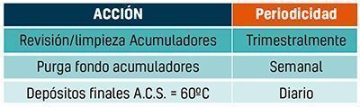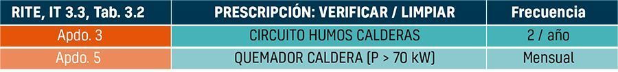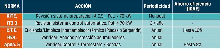 • IT 3.3, tabla 3.2, punto 12: revisar el sistema de preparación de A.C.S. (si la potencia supera los 70 kW, la periodicidad es mensual).